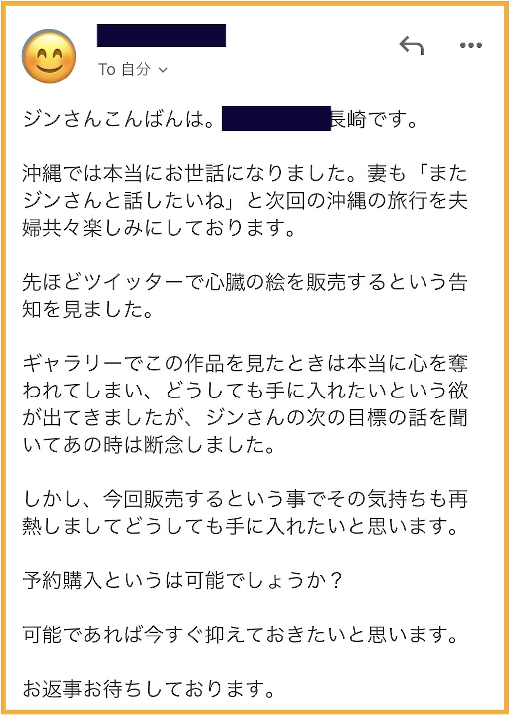 しかも、このTwitter販売をした時点では、今の主力作品である「ZiNART×抽象画」の作品はほとんど販売してませんでした。