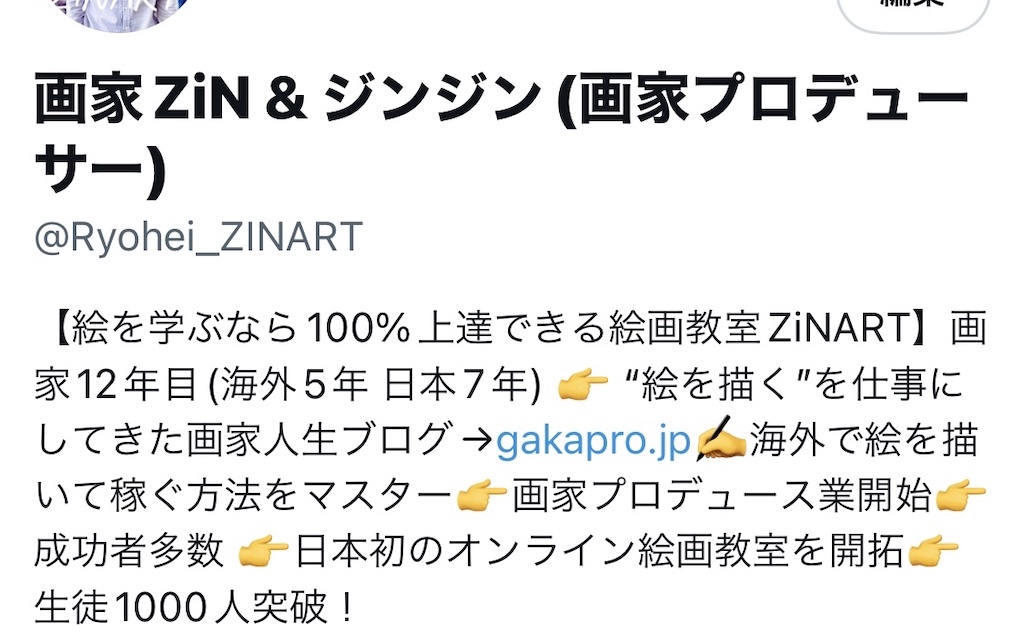 今回の目的はTwitterでの絵画販売の売り上げを伸ばすことですが、プロフィールに記載するのが「絵画を販売します!」だと多くの人がやってる事ですし、そこまで効果はないと判断したので、まずは明確な何かを相手に提示する事にしました。