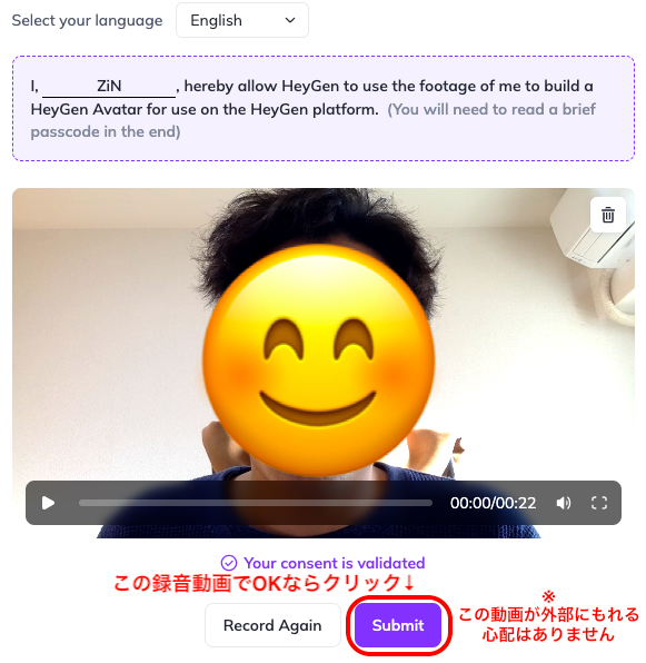 っというのも動画と音声で「このアバターを作ったのは私です」という許諾動画を撮影する必要があります。