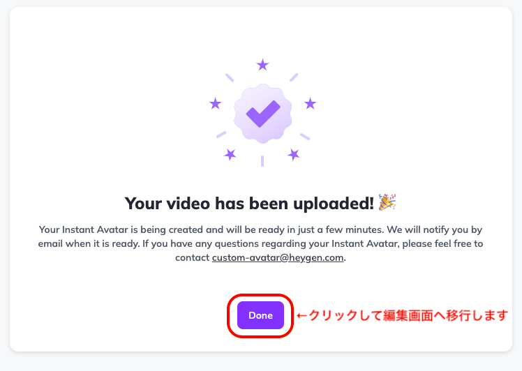 動画音声が承認されました!「Done」をクリックして編集画面へ移行します。