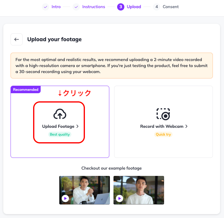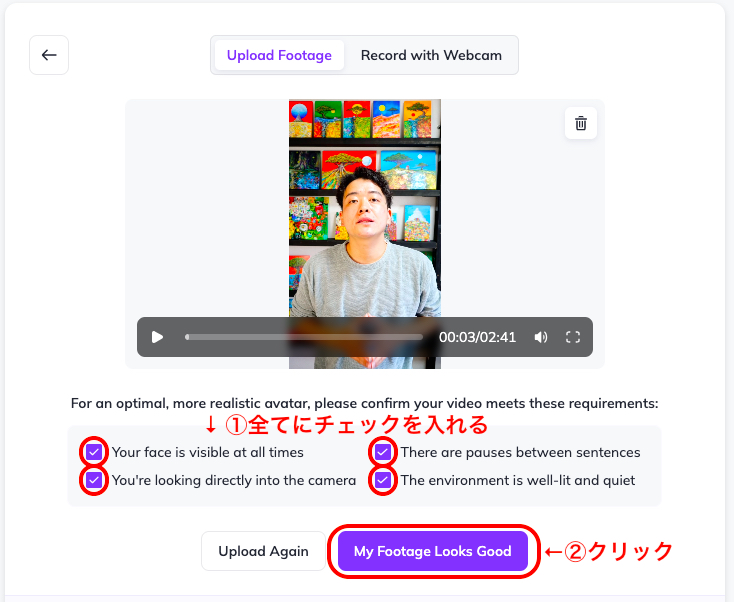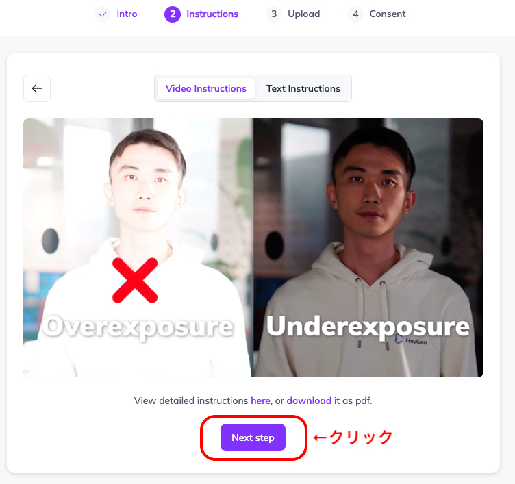 まず撮影する上で、オススメの撮影方法というものをHeyGenが提示してくれいるのでしっかり守りましょう。
