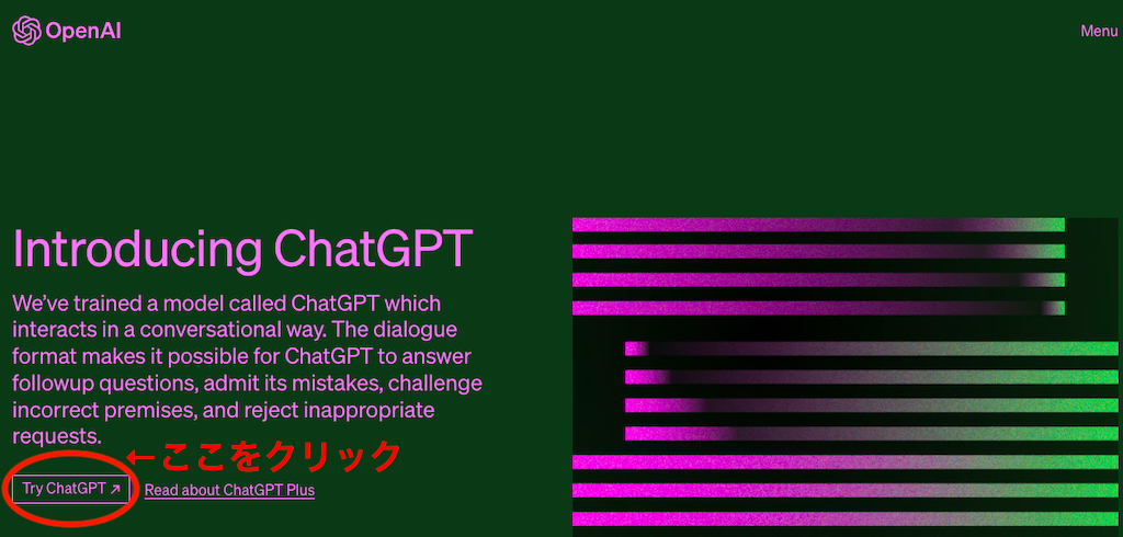 - 左下にある「Try chatGPT」をクリック。