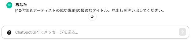 「ChatSpot GPTにメッセージを送る…」というメッセージ欄に下のプロンプトをコピーして貼り付けます。そして次に赤文字の部分を変更します↓