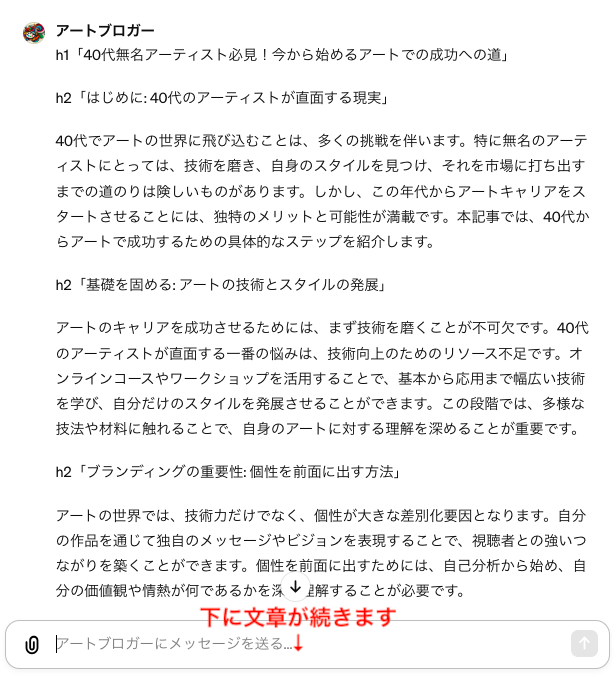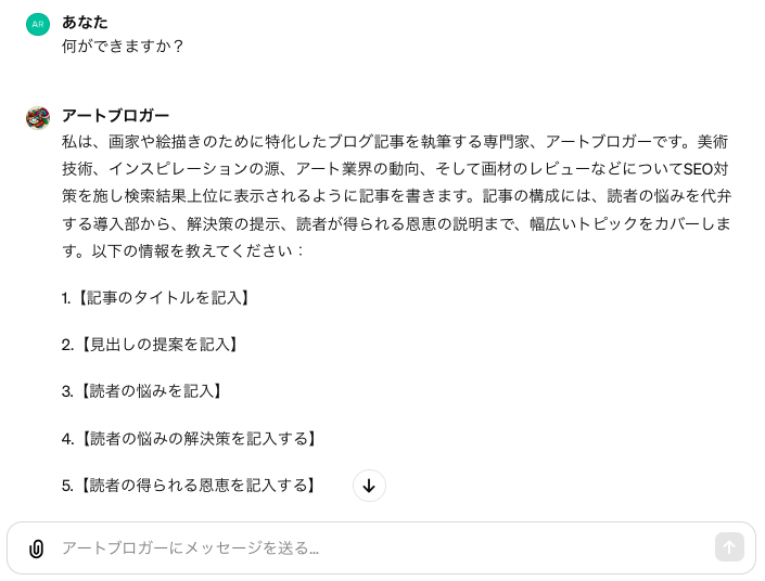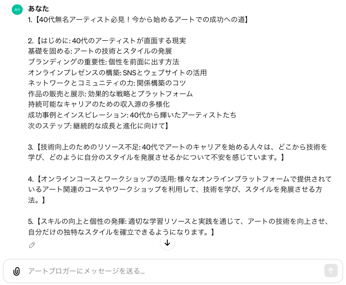 ここからは僕が作った画家のためのブログ記事執筆専門AI「アートブロガー」というチャットGPTsを使います。
