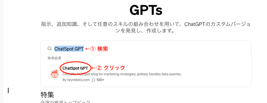 ②「ChatSpot GPT」をコピーペーストして検索してください。