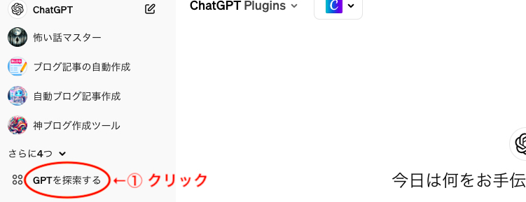 ① 「 GPTを探索する」をクリック。