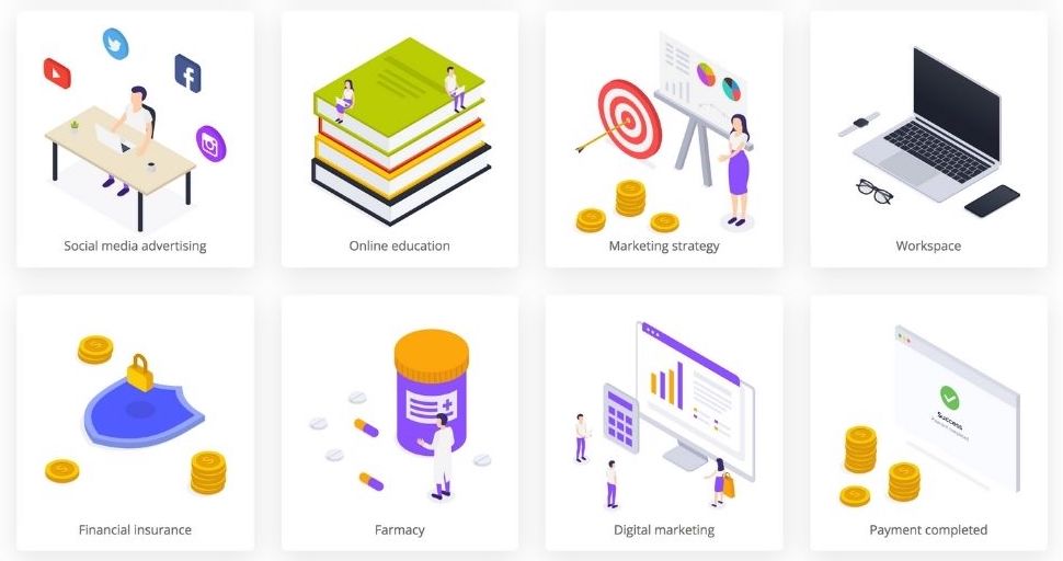「ISOMETRIC」は斜め上から見下ろしたデザインが特徴のイラスト素材です。