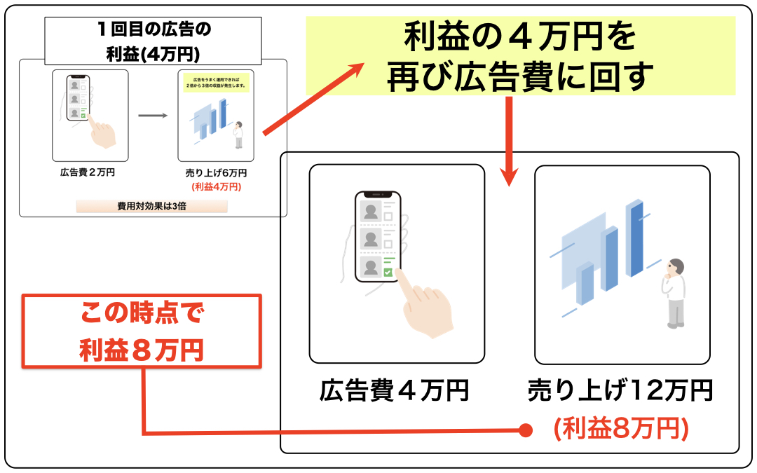 - 1回目の広告配信で出た利益をそのまま広告費に回す