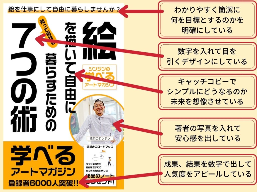 例えば絵画教室の場合、無料で友人やSNSのフォロワーさんに授業に参加してもらって、成功事例の証拠となる写真、あるいは実績を作ってもらいます。