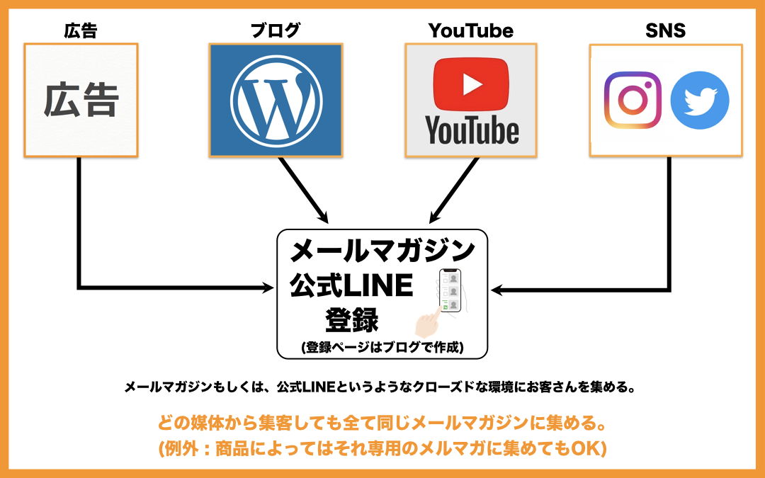 そして広告をうって、最終的に集める場所がメルマガとなります。