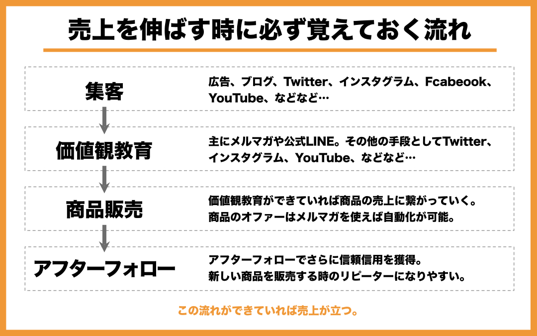 正直フロントエンドの商品でメルマガに入ってもらってから、信用信頼を獲得できればその後のバックエンドは基本的に何を販売しても売れていきます。
