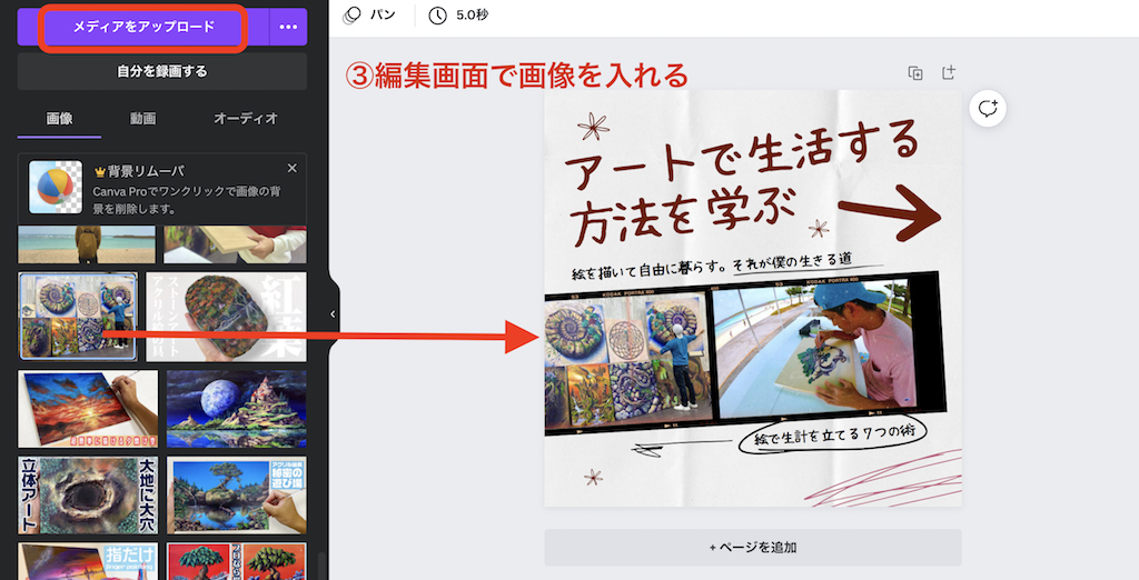 ここからインスタやFacebookに流れる広告画像を作成していきます。