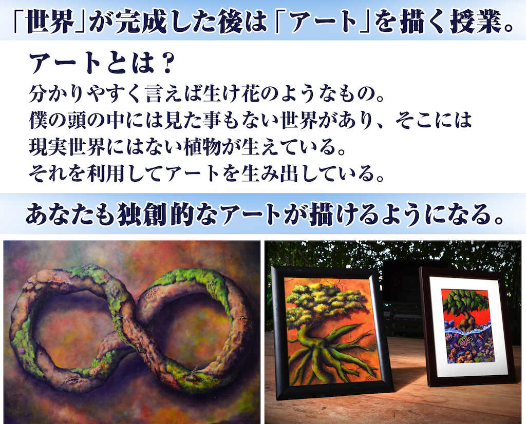 ZINART STOREで販売している全ての絵画に有料の絵画教室ZINARTがついてきます。絵画に同封しているポストカード(プレゼント)の裏面にQRコードが記載されていますので、そちらから購入者専用ページにアクセスすると絵画教室ZINARTへ参加することができます。