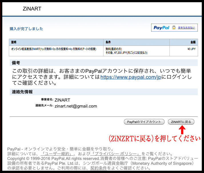 ※決算終了後の上の画面で【(ZiNARTに戻る)↓】