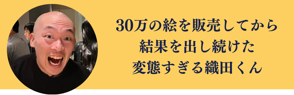 驚愕するほど頑張り屋の織田くん。それほど画力はないのですが、セルフプロモーションの知識を最大限に活かし、僕の後を追って嫁さんと一緒にオーストラリア画家旅にでたり、僕の言った場所や方法で絵を描いてお金を稼いだり、30万円で絵を販売したり、瞬く間に成功への架け橋を登っていく事になりました。彼は現在起業家の道を辿り、画家としての活動よりも起業の方に力を入れているようです。